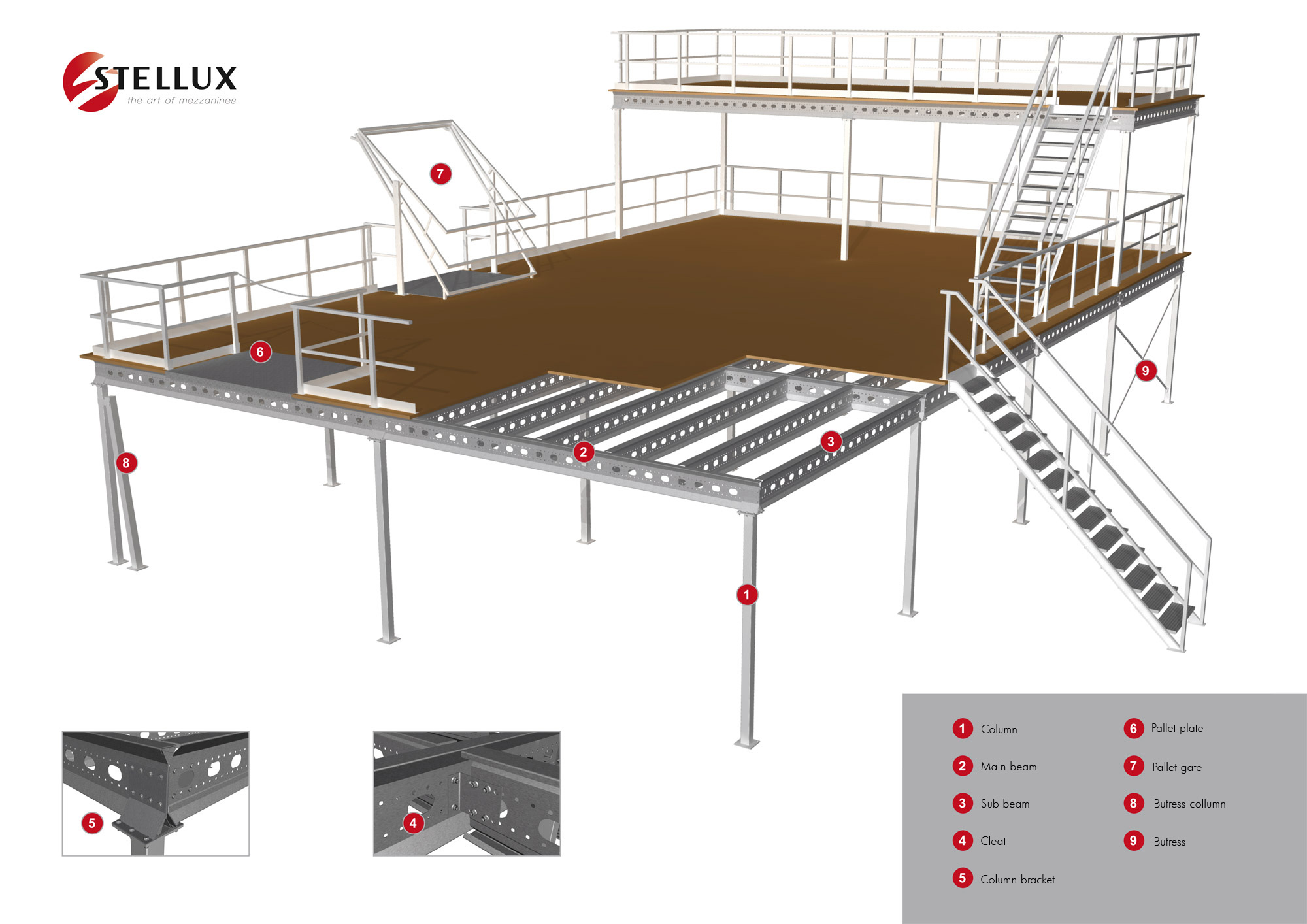 Click on the image below the get an overview of several components which are important for a mezzanine construction.
